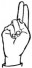 На ћирилици написано БУДИМИР ГАВРИЛОВИЋ састоји се из 17 слова [?]. Исписано ћириличном једноручном азбуком за глувонеме:
